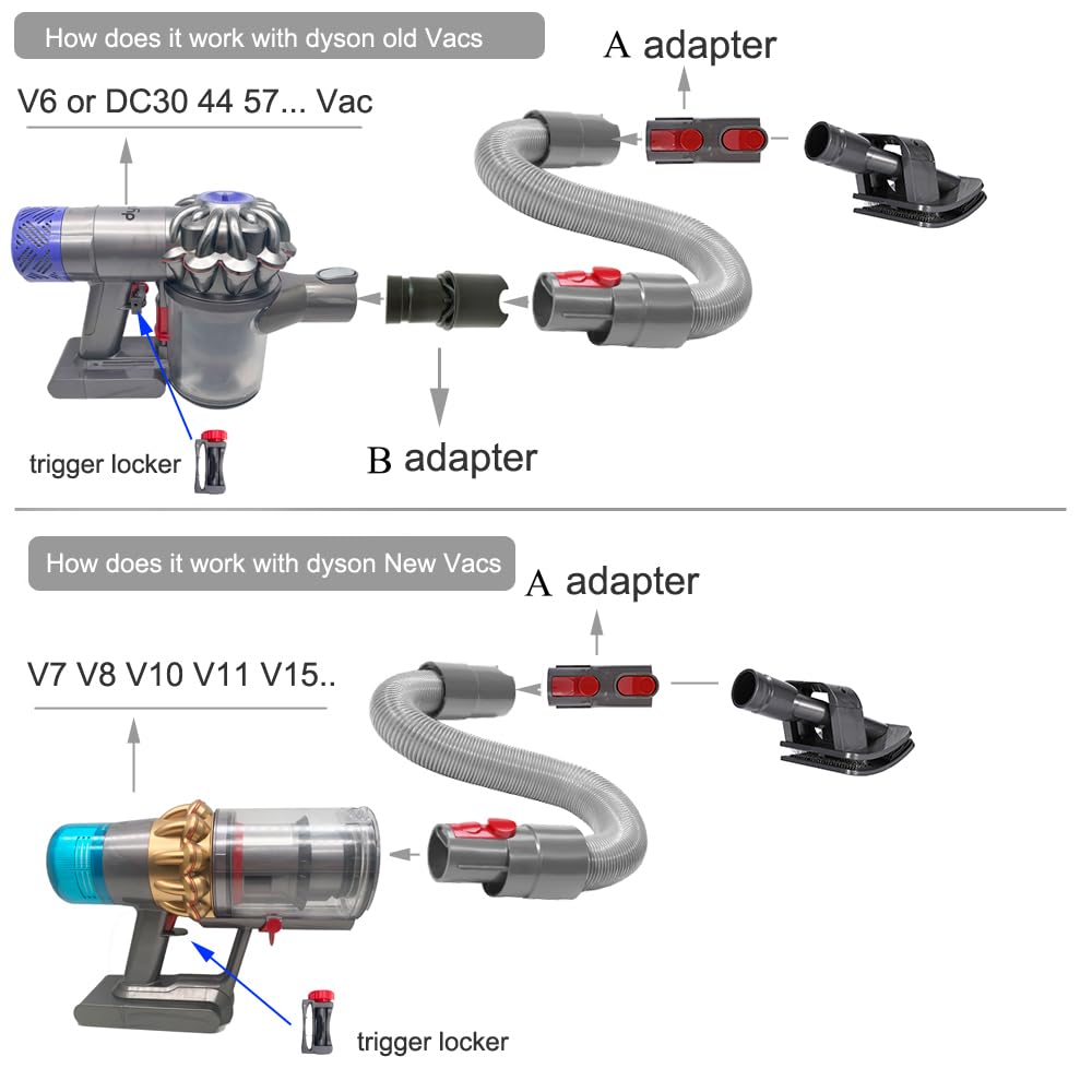 - PET ANIMAL ATTACHMENTS FOR VACUUM FOR DYSON : The hose and grooming tool work perfectly together and can extend up to 62.6 inches, allowing you to keep the vacuum cleaner at a greater distance from your loved pet